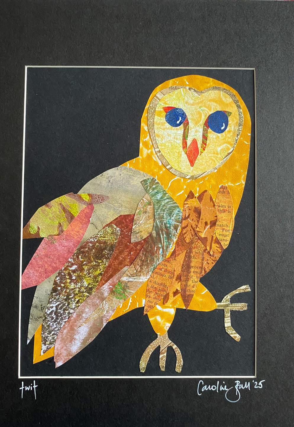 Christmas Craft Sale 2025. Item 35. TWIT! Beautifully painted paper collage. A4 size. (30x21cm) Just glorious!