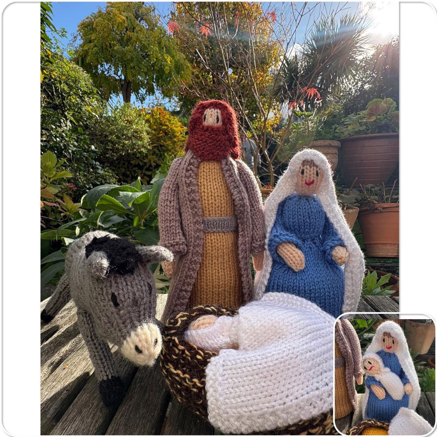 Christmas Craft Sale 2025. Item 235. Beautifully knitted (Jean Greenhow pattern) Nativity set. This is so gorgeously done. Freestanding set. Baby Jesus comes out of the manger as shown. Joseph stands approximately 25cm tall. An absolutely lovely gift.