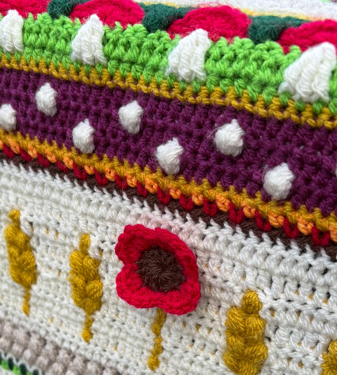 Christmas Craft Sale 2025. Item 280. ‘Fall into Autumn’ Blanket Just wow. An astonishing amount of work here! From poppies to berries and acorns to toadstools, this blanket features all of your seasonal favourites.