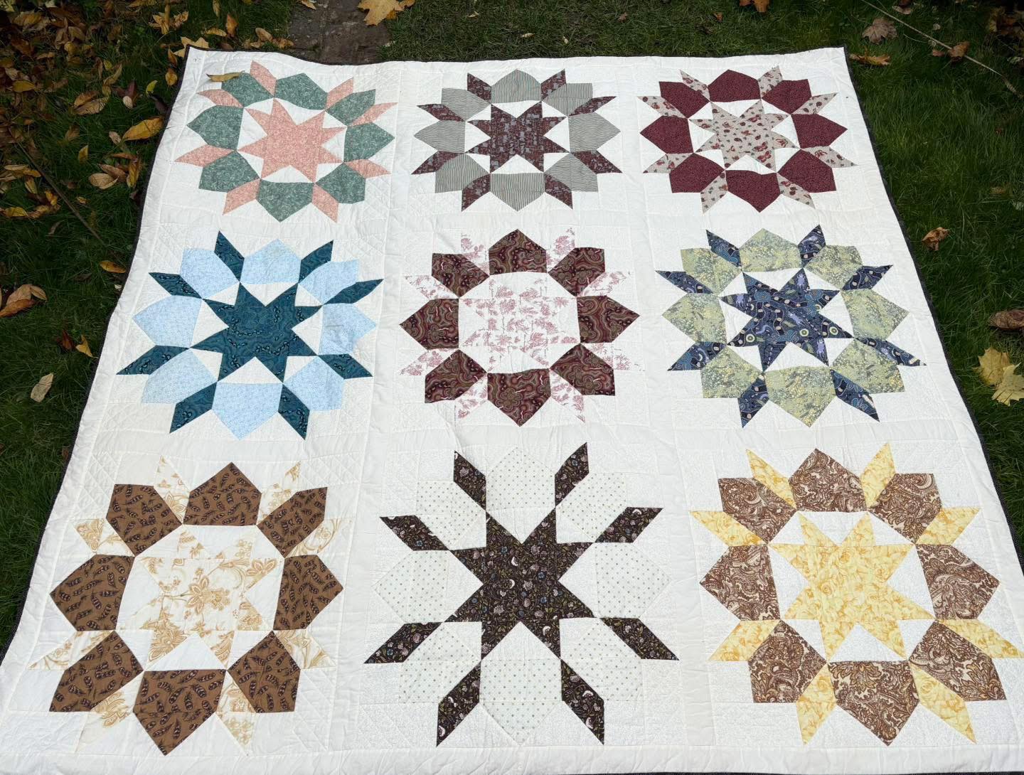 Christmas Craft Sale 2025. Item 339. Vintage quilt in cotton fabrics. Beautifully painstakingly made, it’s just glorious. Measures 195cm by 195cm approx. Absolutely astonishing. It is vintage and does have some marks on it. Am going to see if they come off. If not will photograph. None are big nor affect the beauty of the piece, but we need to let you know.