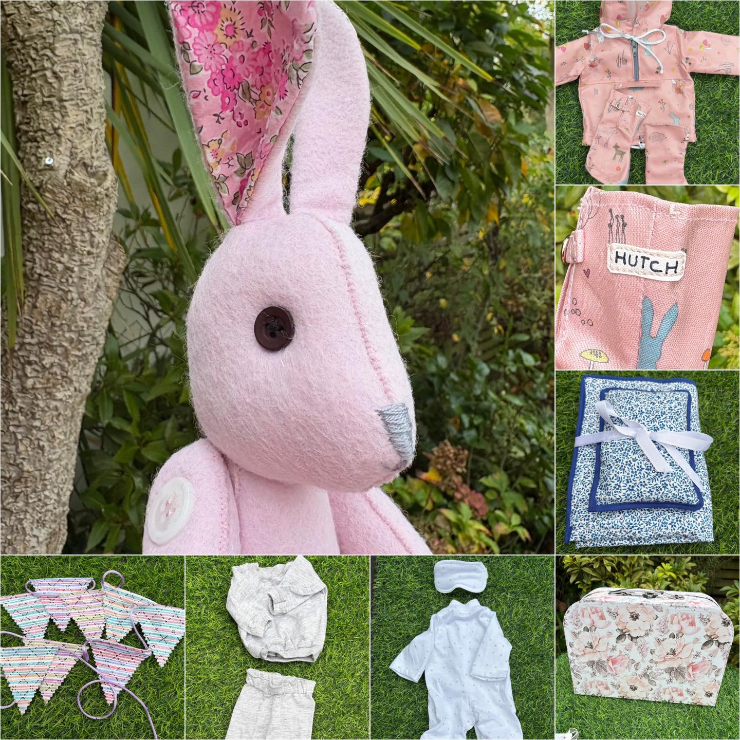 Christmas Craft Sale 2025. Item 456. Beautiful Luna Lapin (designed by Sarah Peel) with the most wonderful wardrobe. She’s in her festival era here! You must zoom in to see the tiny stitching and astonishing attention to detail. Wet weather gear (needed this on the last day at Camp Bestival!) sleeping bag and pillow, pyjamas and eye mask, tracksuit and BUNTING!! She is ready for Camp Bestival 2026! This is an incredible piece. Luna is approximately 48cm tall. Will add the ice in full to the auction page.