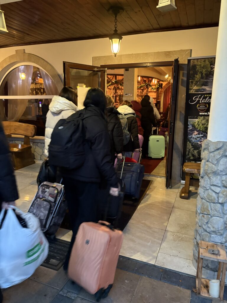It’s always a challenge coming from Ukraine into Poland. War related security plus normal immigration checks, refugee movements, documentation. We’ve heard of border crossings on the Polish side taking 14 hours. Every single piece of luggage comes off and goes through a scanner. Every person is scanned. So much documentation needed. It can be a very tense time. But today the crossing police were helpful, the coach drivers helped the children too, it only took a couple of hours. Thank goodness.