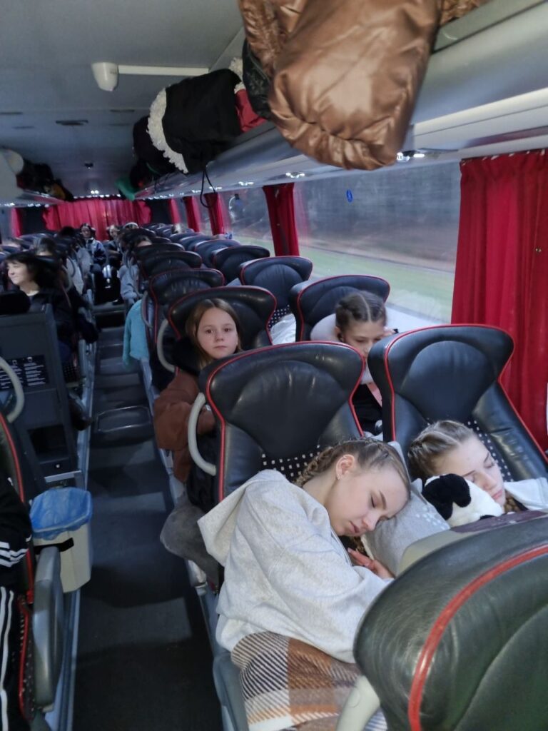 The Ukrainian children’s coach left from near Kyiv at 6.30am, due to arrive at the hotel in Pełczyn, Poland where will all be staying at around 4.30pm. They’ve gone through both Ukrainian and Polish border control. So it won’t be long! We will be so glad to see them.