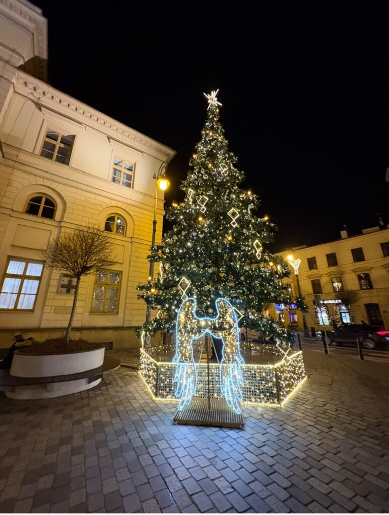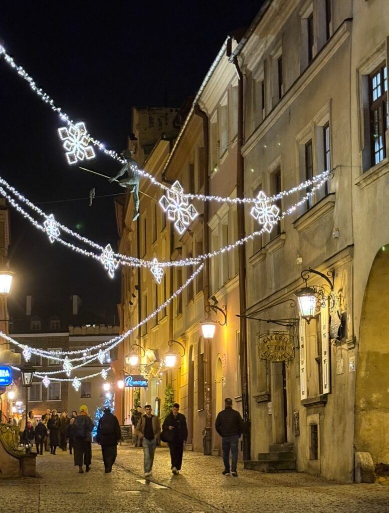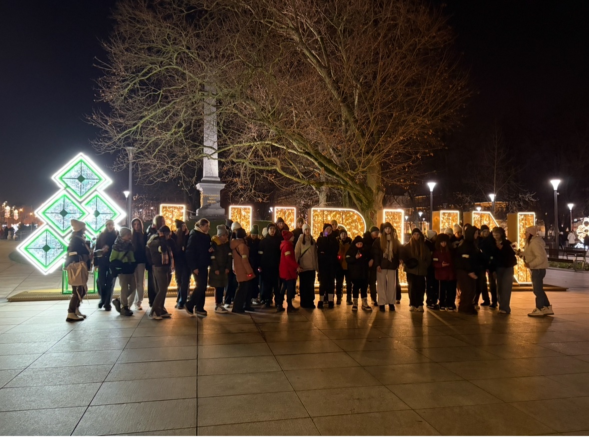 By the time we had finished our session it was already dark. The plan was to park the coach, walk up to the old town and see the lights. The children were given glow sticks which was a super exciting start! Then up the ancient cobbled streets we climbed to find beautifully floodlit buildings and Christmas lights.