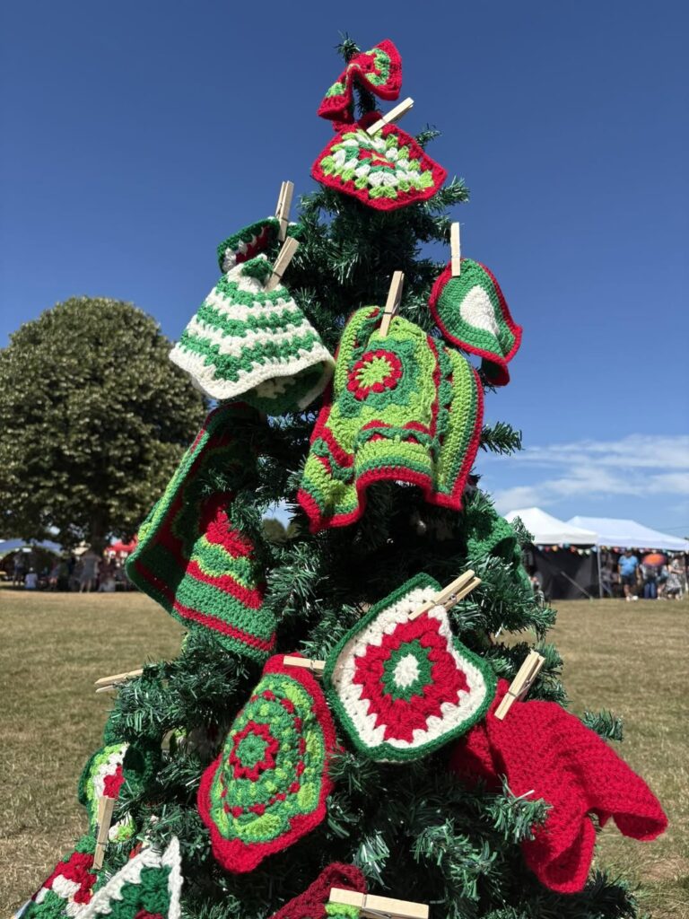 Not one but two summer festivals this year Carry on Crafting was the first and we ran it very much as a drop in knit and natter, for folk to find out about our projects and make us a square for Snugs or Cwtches. It was 38 degrees and we had all the festive yarn out! We even had our Christmas tree so that Cwtch squares could be pegged on! It was lovely to see so many of you there, and thank you again to our wonderful helpers, Jen E, Ali, Os, Our Peg, Hilary and Paula! It was great fun, both on spreading the word and fund-raising front. Thank you for all the balls of wool for the lucky dip, it was so brilliantly successful. We will be repeating that next year, news soon.
