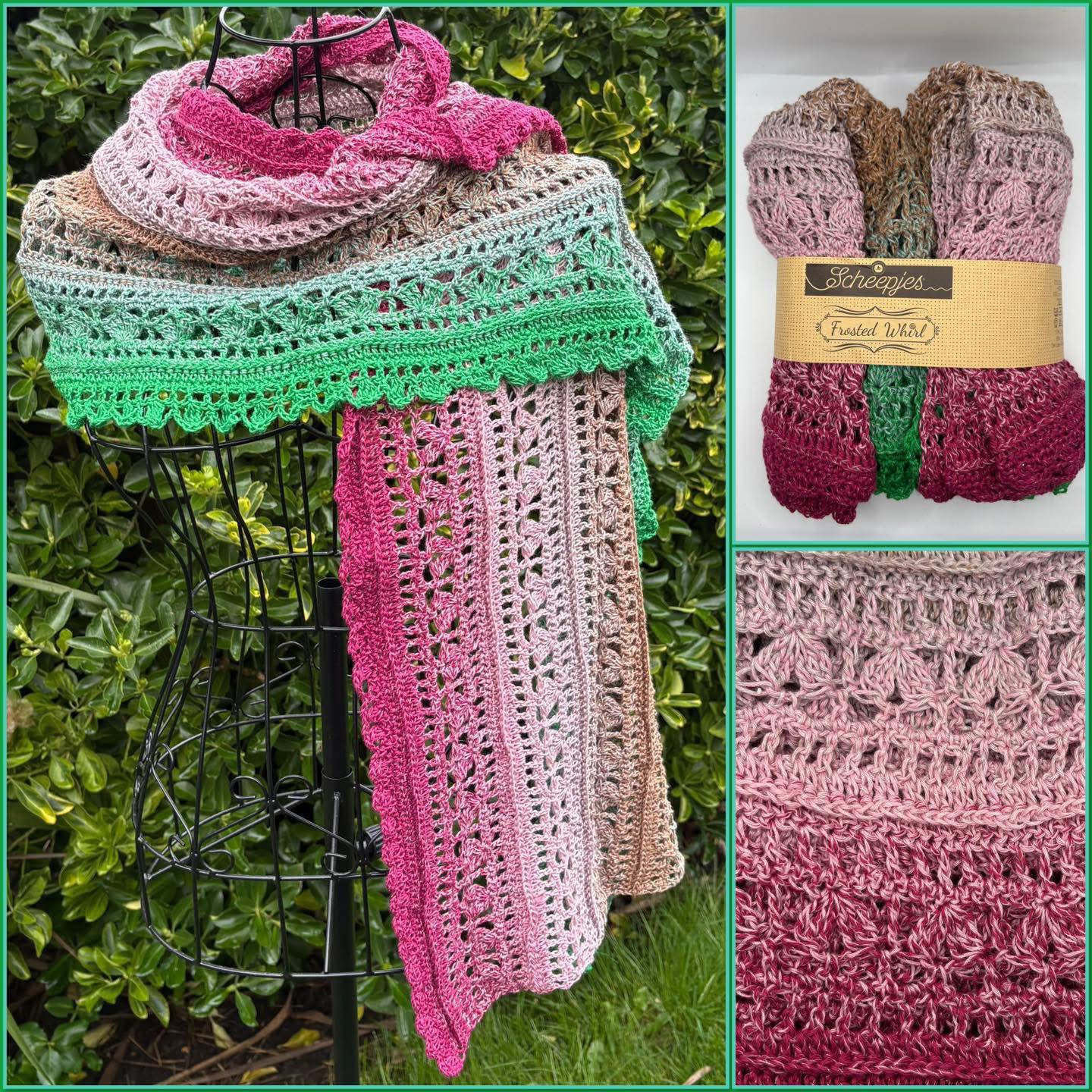 Spring Craft 2026. Item 338. Stunning Scarf in Scheepjes Frosted Whirl, colour way Skinny Scream.