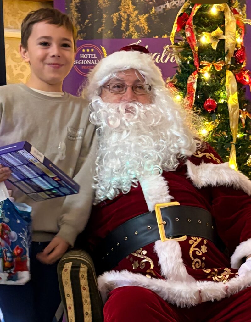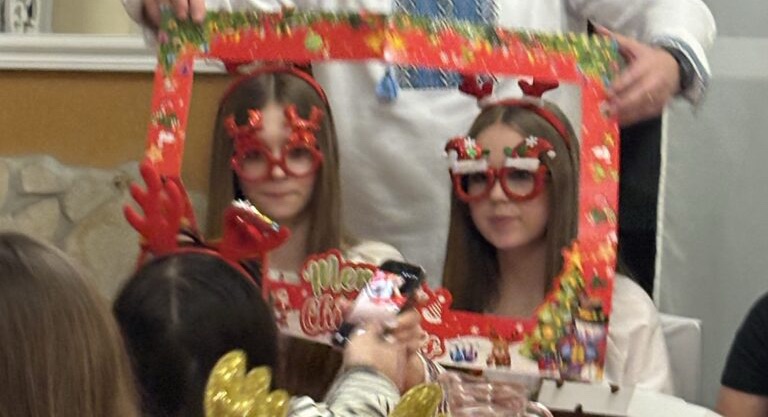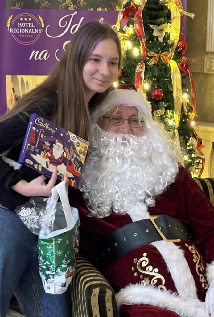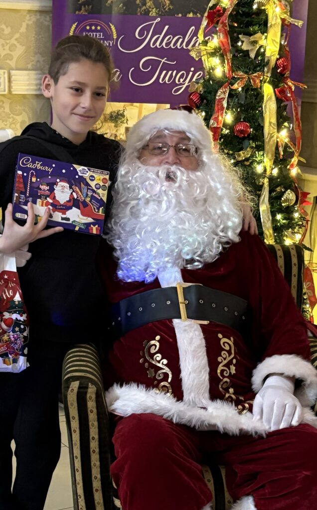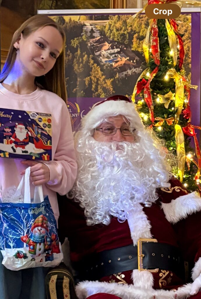 “His eyes how they twinkled, his dimples how merry….“ He came with a bag of little presents and a chocolate selection box for each child. And while they knew that it was Michael there was an adorable sense of suspended disbelief amongst the youngest!